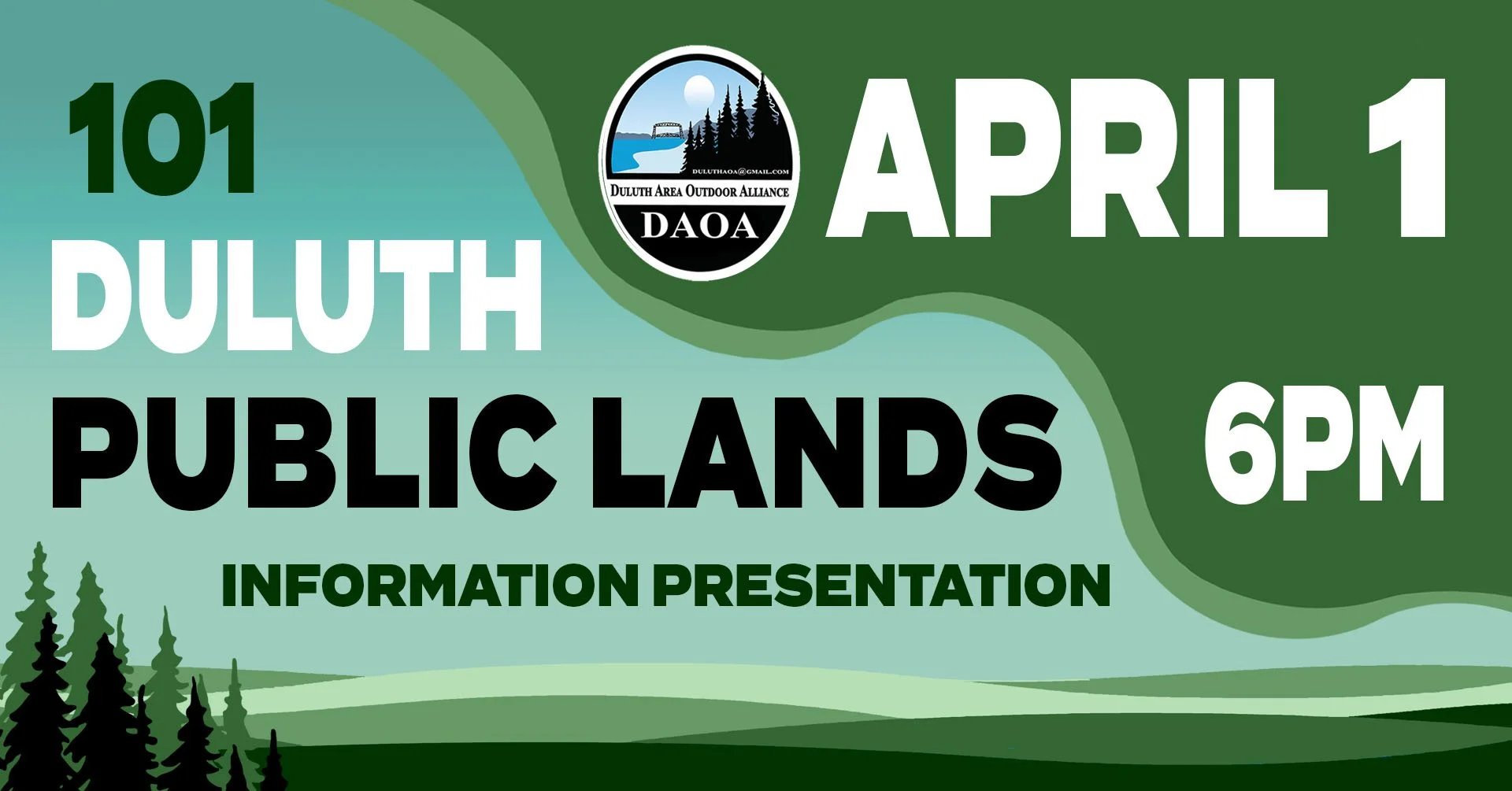 Join the Duluth Area Outdoor Alliance (DAOA) for an informative presentation about public lands in Duluth. We will explore what these lands are, their vulnerabilities to sale or transfer, and the protections that are in place, if any. The discussion will cover our existing parks and open spaces and how we arrived at our current situation. Additionally, we'll highlight steps each of us can take to help ensure that Duluth remains a "green belt" city.